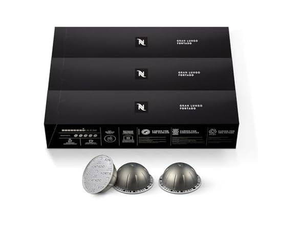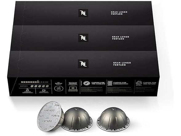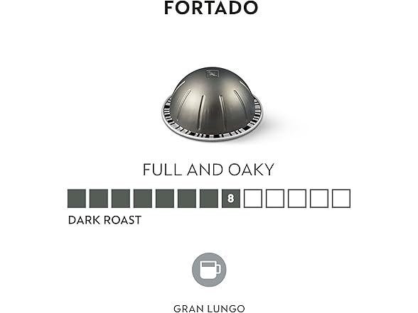 Nespresso Capsules VertuoLine, Fortado Gran Lungo Americano, Dark Roast Espresso Coffee, 40 Count Coffee Pods