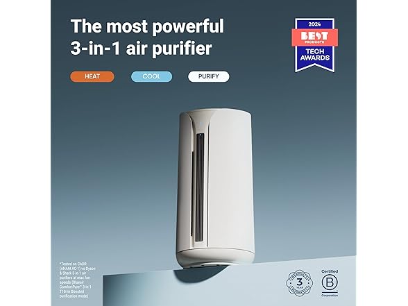 - YEAR ROUND COMFORT: Easy, clean air for your preferred temperature, any time of year; TripleFlow Hot and Cool technology with three unique outlets ensure cooling, heating and purification mode is optimized to deliver purified air and airflow to keep a room comfortable no matter the season. No matter the chosen mode, air always goes through our filtration technology