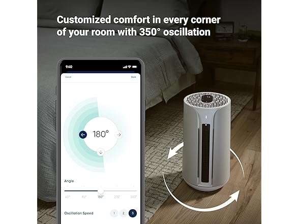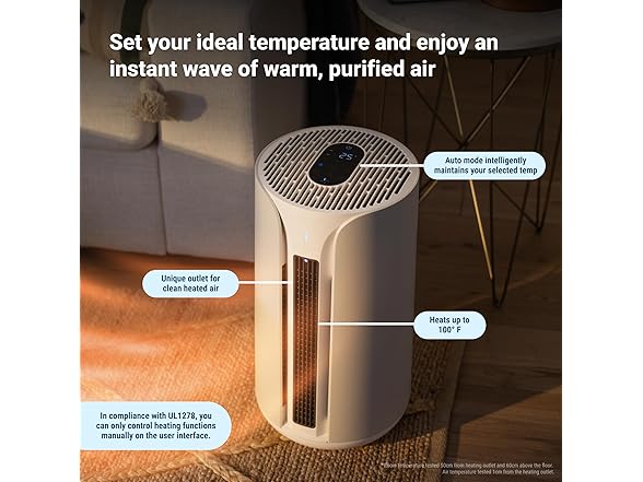 - PERFECT WARMTH: Quickly warm the room up to 100°F to get the perfect warmth**; Our PTC heating technology can quickly reach a stable warmth in 60 seconds*** to help you tackle those cold spots in your home. Set the purified warm air to a consistent stream, or chose your best angle through oscillation options up to 350 degrees