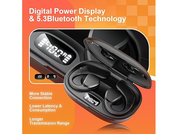 - Long Duration & Wireless Charging - The open ear wireless earbuds last 8 hours continuous playback after fully charged, and up to 60hrs with the charging case. You can know the battery level via the LED display at any time. The slim charging case is easy to carry