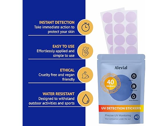 New UV Detection Stickers for Sunscreen Reapply Reminder, Suitable for Kids & Adults, 40 Pack Sticker Patches, Sun Cream Instant Monitoring