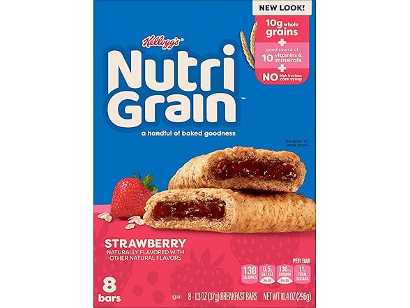 - Includes 1, 10.4-ounce value-sized box containing 8 Nutri-Grain Soft Baked Breakfast Bars Strawberry; Individually wrapped and packaged for freshness and great taste