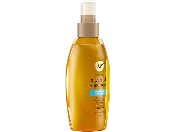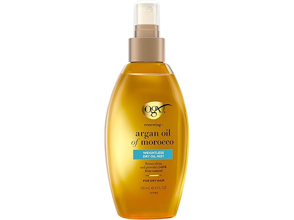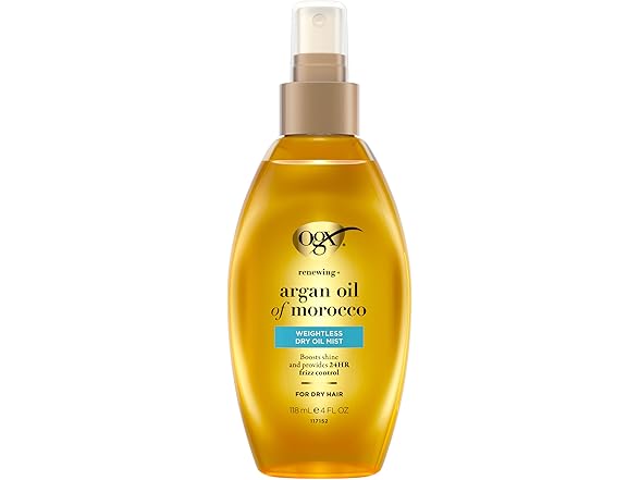 - Complete hair care routine powerhouse: pair this 4 fl oz OGX Renewing + Argan Oil of Morocco Weightless Healing Dry Oil Spray with Renewing + Argan Oil of Morocco Shampoo and Conditioner for enhanced softness, shine and frizz control.