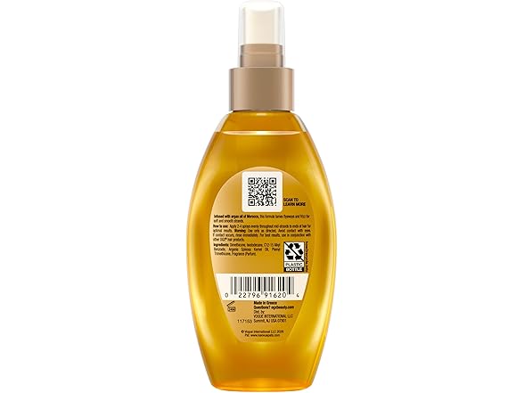 - Moisture boost & strength support: hydrating blend of rich cold-pressed Moroccan argan oil helps improve hair strength and elasticity; free from parabens and sulfate-free surfactants, this dry oil spray reinforces strands.