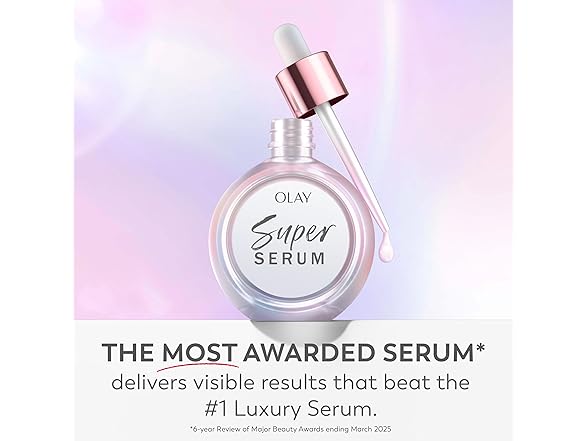 - AWARD-WINNING SKIN CARE: Olay Super Serum is The Most Awarded Serum.* It delivers visible results that beat the #1 Luxury Serum. *6 Year Review of Majoy Beauty Awards ending March 2025