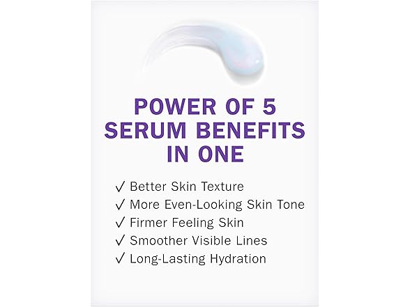 - 5 POWERFUL BENEFITS IN 1 SUPER SERUM: This clinically tested and proven facial serum delivers hydrating, smoothing, firming, brightening, & improved texture benefits for healthy looking skin day 1.