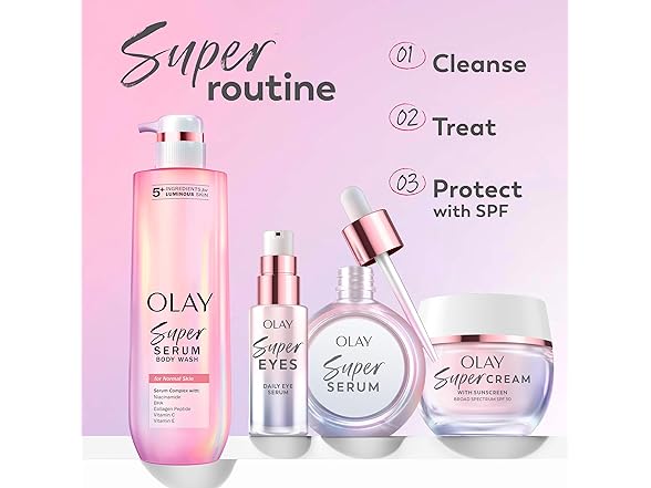 - LIGHTWEIGHT, DAILY SERUM: Apply this lightweight face serum evenly over cleansed face and neck, every day and night to see results. Protect your glow by adding Olay Super Cream with Sunscreen into your morning skincare routine.