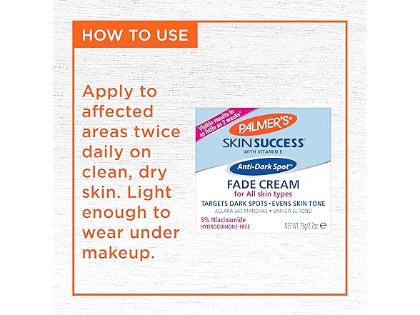 (1) Palmer's Skin Success Anti-Dark Spot Fade Cream with Vitamin E and Niacinamide, for All Skin Types 2.7 Ounce