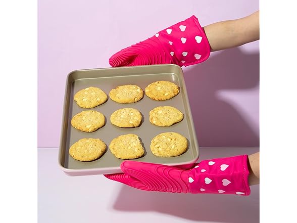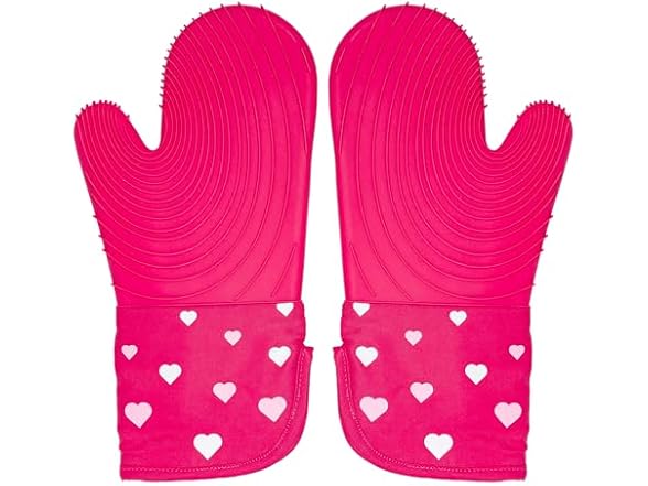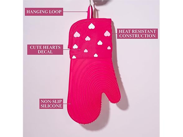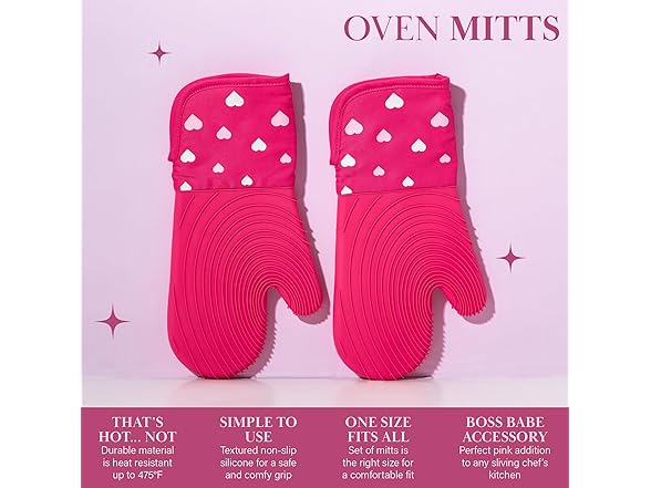 Paris Hilton Oven Mitt Set with Heart Design, Heat Resistant Pot Holders Featuring Non-Slip Textured Silicone Grips, 2-Piece Set, Pink