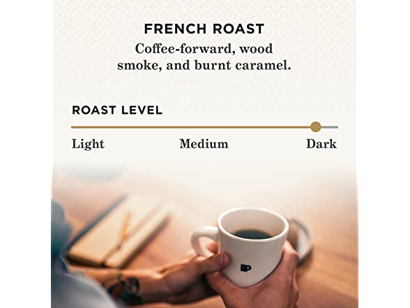 Description: For those who relish smoky overtones and a pleasant bite, drinking French Roast exemplifies our commitment to rich, powerful coffee.