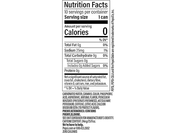 In the Box:- (1) Pepsi Zero Sugar Mini Cans, 7.5 Oz (Pack of 10)