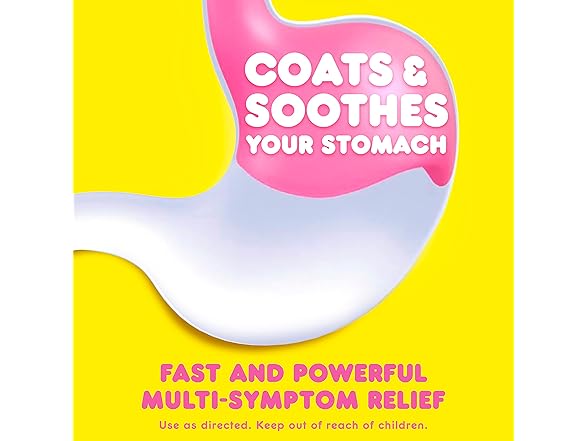 - COATS AND SOOTHES: Pepto Bismol’s coating action calms your stomach and soothes your digestive system to provide fast stomach relief equally as effective as Pepto Bismol Liquid