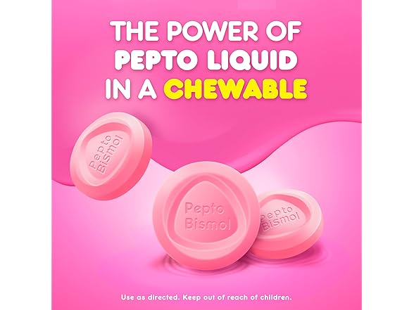 - CONVENIENT FORM: Pepto Bismol Chewables are a convenient way to get on-the-go relief from your upset stomach symptoms