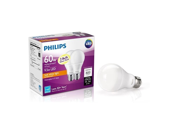 Philips 455576 60W Equivalent 2700K A19 LED Light Bulb, Soft