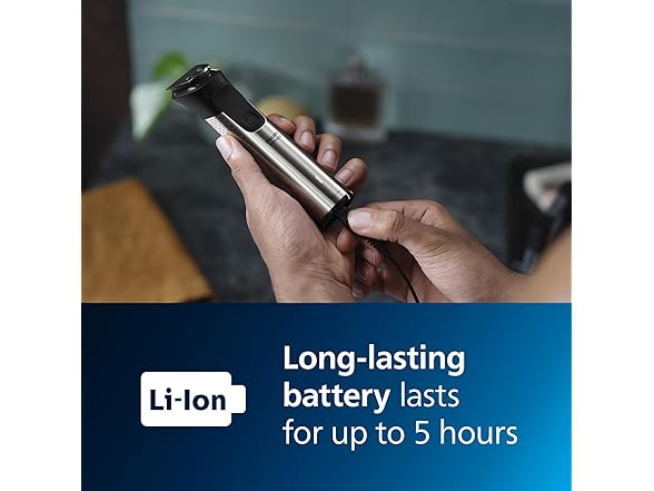 - The stainless steel handle with rubber grip delivers superior control and the long-lasting lithium-ion battery provides up to 5 hours of runtime for long life and maximum power
