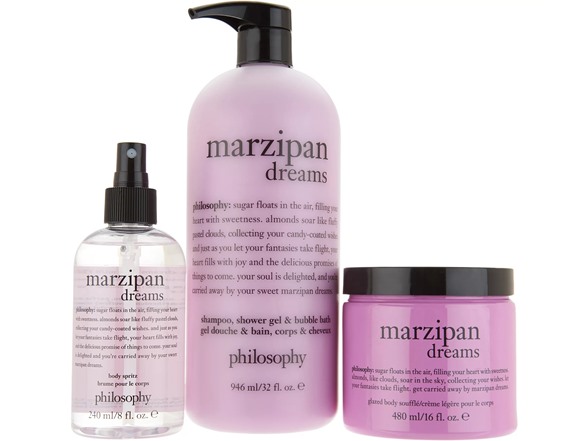 - Keep your skin soft, smooth, and smelling delicious! From philosophy, this super-size trio lets you layer your favorite philosophy scents. The multitasking, 3-in-1 shampoo, shower gel, and bubble bath formula provides a rich, foaming lather to cleanse and condition, leaving skin and hair feeling silky soft. For skin that feels comforted, soft, and smooth, the ultra-moisturizing souffle formula soothes dry, depleted skin with a unique blend of ingredients. Refresh and lightly scent with the body spritz.