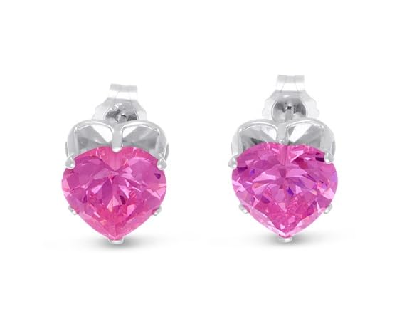 - (1) Pink CZ Heart Stud Earrings in Sterling Silver