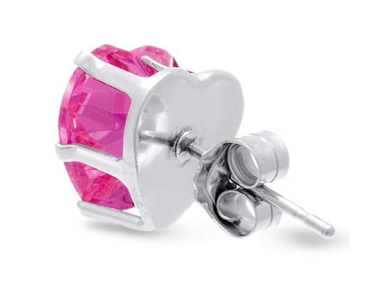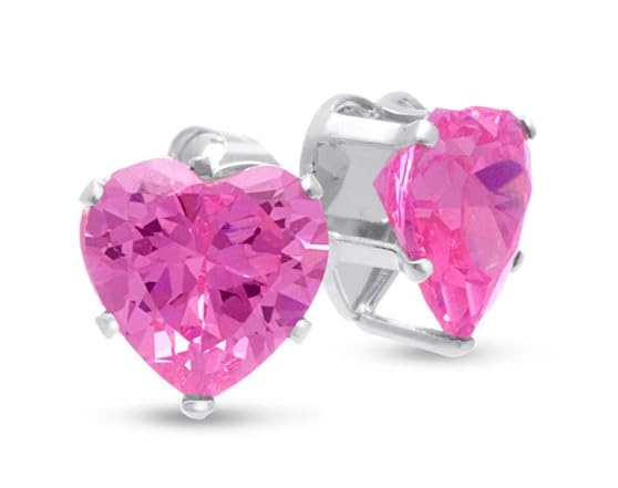 Gorgeous pair of pink cubic zirconia heart earrings perfect for everyone! These earrings have the look of a 4 carat pair of pink diamond heart stud earrings. The earrings are crafted in solid sterling silver. They have post with friction backs.