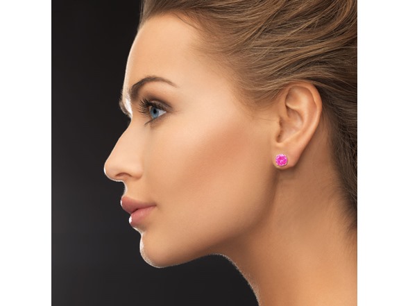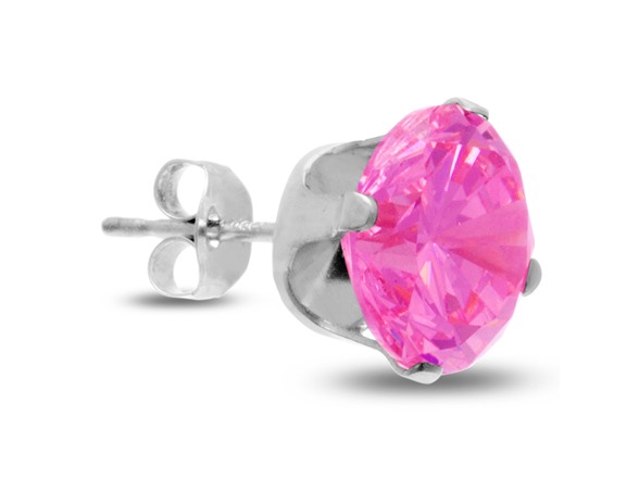 Gorgeous pair of pink cubic zirconia earrings perfect for everyone! These earrings have the look of a 4 carat pair of pink diamond stud earrings. The earrings are crafted in solid sterling silver. They have post with friction backs.