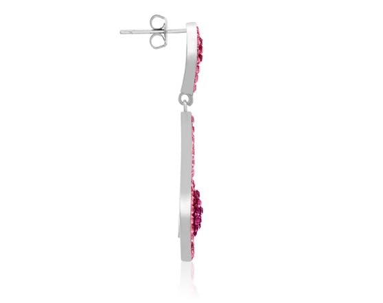 These elegant earrings feature pink Swarovski elements crystals adorning a drop earring. Earrings dangle down about 1 1/2 inches. Earrings are crafted in silver plated eco brass. and have comfortable and secure post with friction backs.