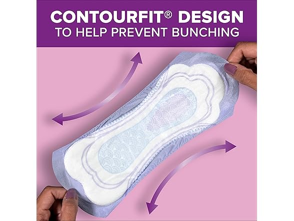 - Comfort: curve-shaped pad with contour helps prevents bunching and features a wider front and back for secure incontinence protection.