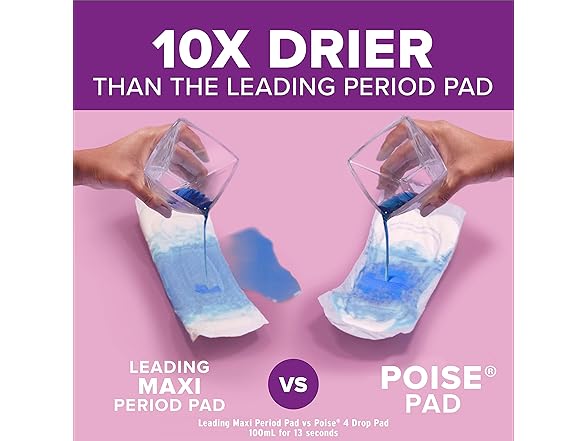 - Stay Dry: remain comfortable throughout the day and help keep wetness away from your skin—it keeps you 10x drier than the leading period pad.