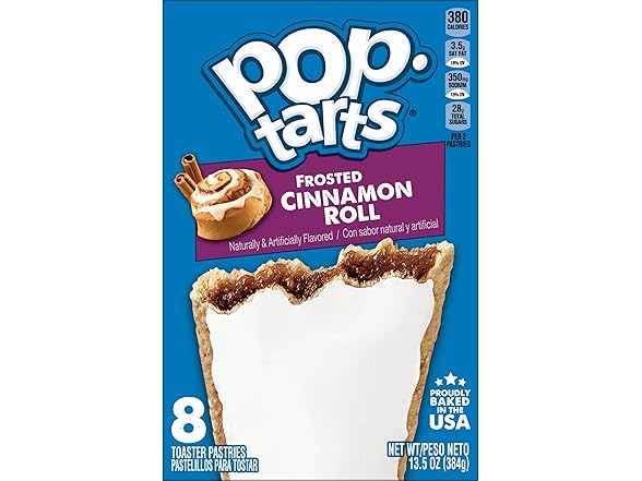 In the Box:- (1) Pop-Tarts Toaster Pastries, Breakfast Foods, Kids Snacks, Frosted Cinnamon Roll (8 Pop-Tarts)