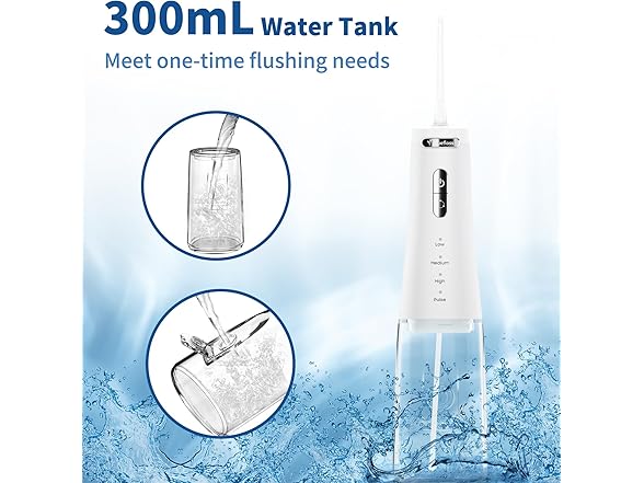 - 300 ML Capacity Removable WaterTank: Upper and lower structure design, easy to disassemble and clean.No need to add water repeatedly to meet the needs of cleaning teeth. Anti-slip particles on the back enhance grip