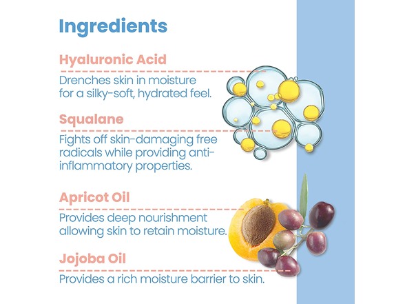 - Infused with Hyaluronic Acid, this silicone-free moisturizer leaves your skin feeling silky-soft and hydrated, while visibly looking more plump, firm and lifted.