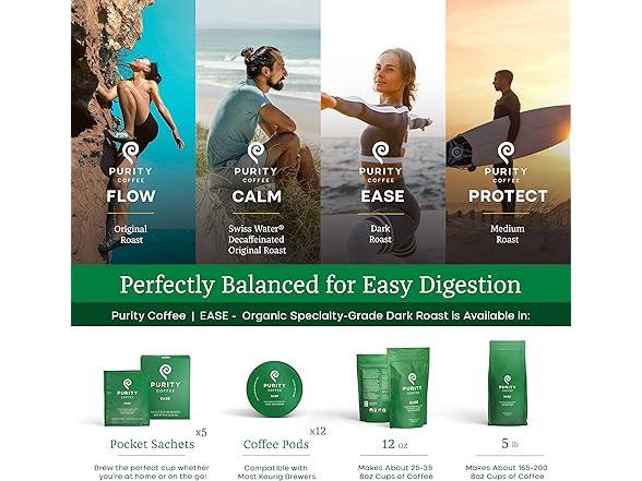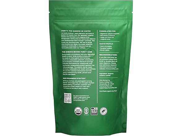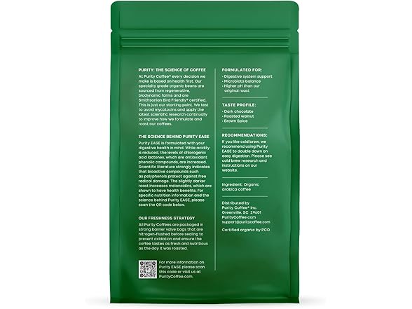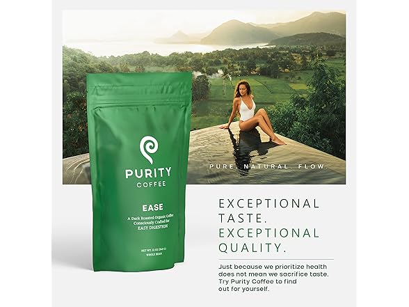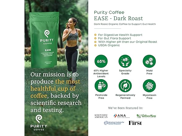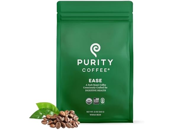 Purity Coffee EASE Low Acid Dark Roast Whole Bean (12oz Bag) | Specialty-Grade USDA Organic Arabica Blend | Third Party Tested for Mold, Mycotoxins & Pesticides