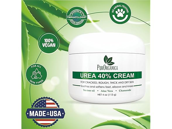 PurOrganica Urea 40% Foot Cream - Made in USA - Corn, Callus and Dead Skin Remover - Moisturizer & Rehydrater - For Thick, Cracked, Rough, Dead & Dry Skin - For Feet, Elbows and Hands - Pack of 2