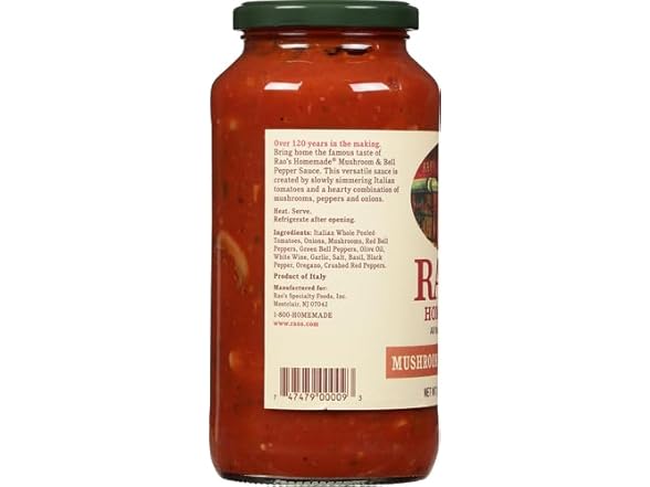 - ALL NATURAL, PREMIUM QUALITY: Rao's Homemade Mushroom and Bell Pepper Sauce is a premium, slow-cooked, all-purpose Italian pasta sauce. Each jar brings you the warm, classic flavor of homemade tomato sauce