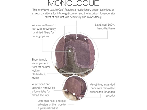 - FEATURES: Wide Hand-tied monofilament part, temple to temple lace front, ultra-thin hook ad loop adjusters, velvet lined ear tabs and extended nape
