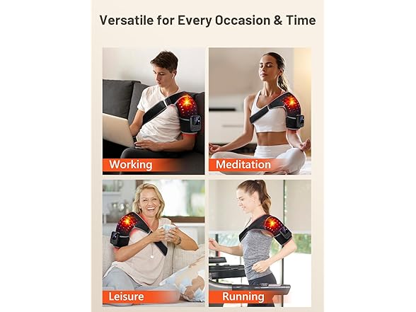 - Shoulder Heating Pad: Infrared light therapy for body and shoulder has six modes from 100°F-131°F to meet different levels red light therapy needs. From the built-in overheat protection chip and automatic shut-off timer, you can enjoy red light spa on your shoulder without worries once setting at the auto timer. Note: Our red light therapy shoulder wrap operates on a different principle than simple shoulder heating pads, using red light therapy to create a soothing warmth. Therefore, the warmth you feel is best perceived by your body and may not correspond to a reading on a traditional thermometer.