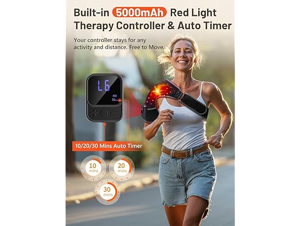 - 5V 5000mAh Cordless Design: This cordless red light therapy shoulder pad boasts a 5V 5000mAh rechargeable battery. It offers up to 110 minutes (at L5M3 the maximum setting ) to 210 minutes (at L1M1 the lowest setting ) of use on a full charge (180 minutes to full charge the battery). The wireless design allows you to move freely during use without being confined to outlets and length of the cord. Especially for enjoying shoulder message and light therapy during running or exercising.
