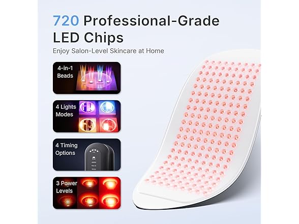 - ✅【Upgraded 4 Chips】- The LED mask light therapy features 180 high-power professional LED beads, with each bead containing 4 chips (1×630nm, 1×850nm, 1×605nm, and 1×460nm), totaling 720 LED chips—more LEDs mean broader energy coverage, helping improve overall skin circulation and health. The professional-grade Hello Face red light beauty device is not only suitable for home use but also perfect for spa and aesthetic centers.