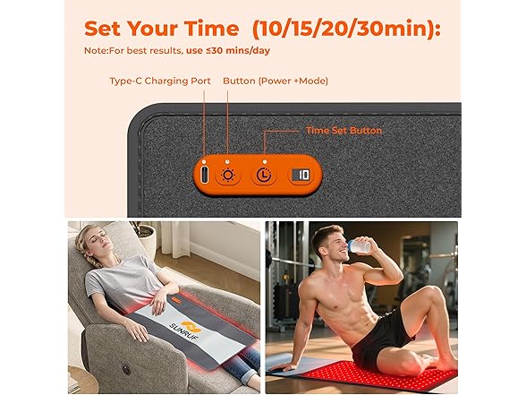 - 【4 Mode & Timer Setting】Customize your red light therapy pad experience with 4 modes and flexible timer settings! Press the power button and choose from Low, Medium, or High intensity for tailored sessions, or select the Pulsing mode for gentle, rhythmic light therapy. Easily adjust between 10, 15, 20, or 30 minutes sessions to match your needs—perfect for quick relaxation or extended wellness routines. The built-in timer automatically shuts off for worry-free use.