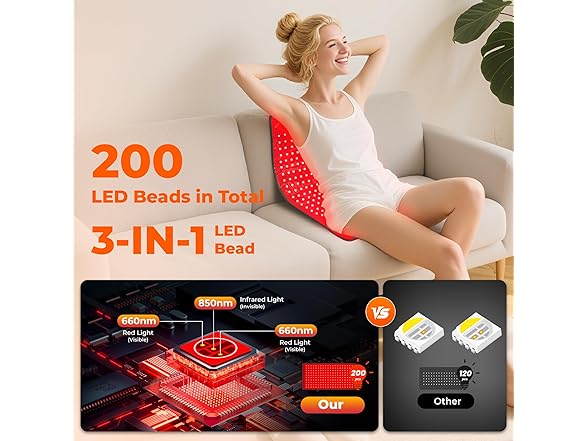 - 【Upgraded 2026 Red Light Therapy for Body】Experience the wellness of our upgraded red light therapy for body. Equipped with 200 lamp beads, each containing 3 powerful chips( 2* 660nm visible red light and 1*850nm invisible near infrared light), this therapy mat ensures deeper penetration and enhanced red light therapy effects, making it an ideal choice for full-body therapy and an essential companion for your daily wellness routine.