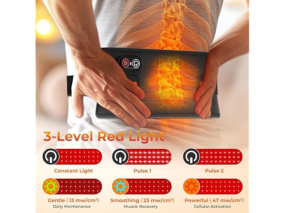 - 【3 Mode】Customize your red light therapy pad experience with 3 modes and flexible timer settings! Press the power button and choose from Low, Medium, or High intensity for tailored sessions, or select the Pulsing mode for gentle, rhythmic light therapy. Perfect for quick relaxation or extended wellness routines. The built-in timer automatically shuts off for worry-free use.