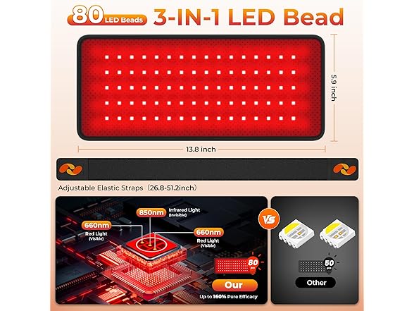 - 【Upgraded 2026 Red Light Therapy for Body】Experience the wellness of our upgraded red light therapy for body. Equipped with 80 lamp beads, each containing 3 powerful chips( 2* 660nm visible red light and 1*850nm invisible near infrared light), this therapy mat ensures deeper penetration and enhanced red light therapy effects, making it an ideal choice for full-body therapy and an essential companion for your daily wellness routine.