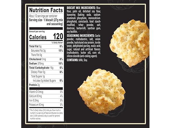 - Easy to Make Baking Mix: Just add shredded cheddar and water to the mix and bake—add garlic herb seasoning to melted butter and brush over biscuits
