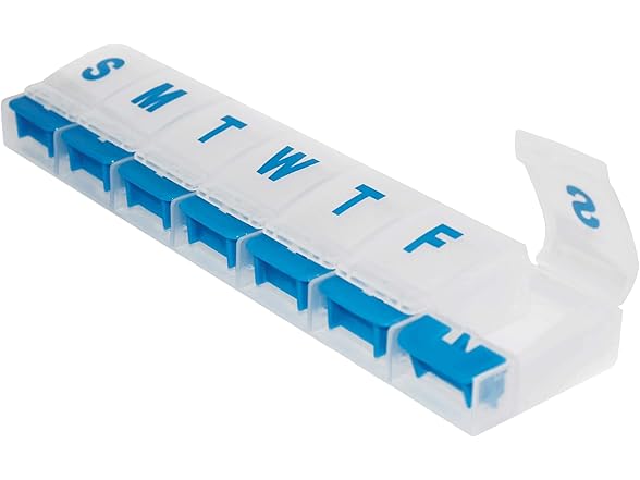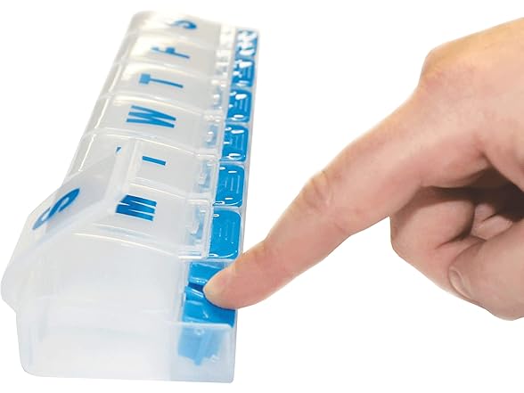 Rehabilitation Advantage Weekly Pill Organizer – 7-Day Push Button Pill Box with Large Compartments, Easy Open Design for Medications and Vitamins. Travel & Daily Use