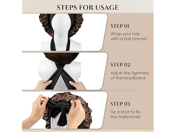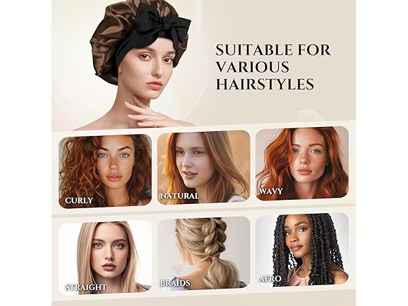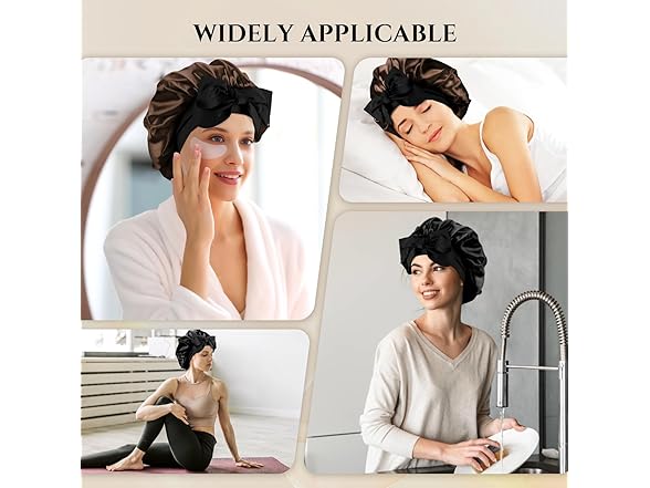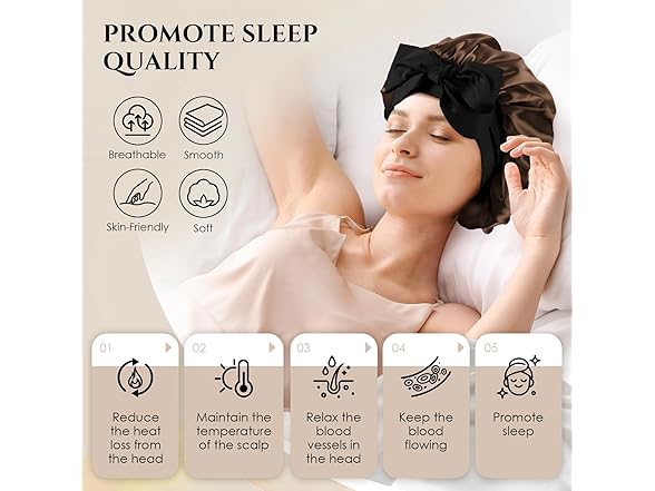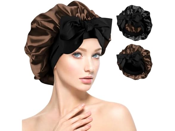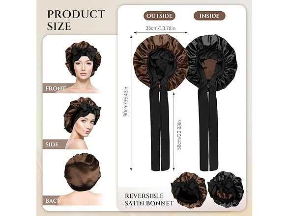 Reversible Satin Bonnet for Sleeping Women, Double Layer Soft Ajustable Elasticity Band Satin Bonnet for Sleeping Hair Silk Sleep Cap Reduce Frizz (Coffee + Black)