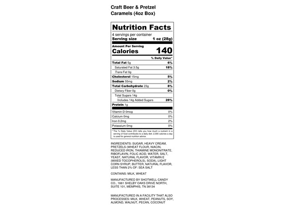 - (1) – Craft Beer & Pretzel Caramels, 4oz.