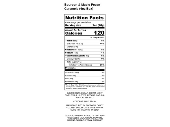 - (1) – Bourbon & Maple Pecan Caramels, 4oz.