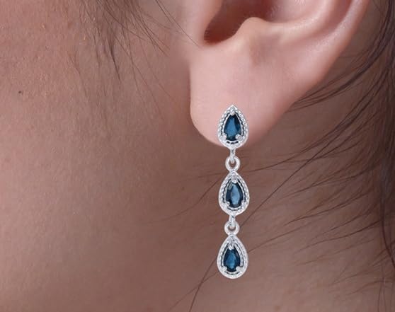 Sterling Silver Blue Sapphire Dangle Earrings (0.90 CT). The Blue Sapphire stones are Heat Treated.