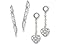 (1) Jose Jay Sterling Silver Cubic Zirconia Dew Tipped Ear Pin Earrings with Cubic Zirconia Heart Interchangeable Enhancer Dangle Earrings