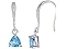 Sterling Silver Swiss Blue Topaz Dangle Earrings. The Blue Topaz stones are Heat Treated. The main gemstone is surrounded by White Cubic Zirconia stones.