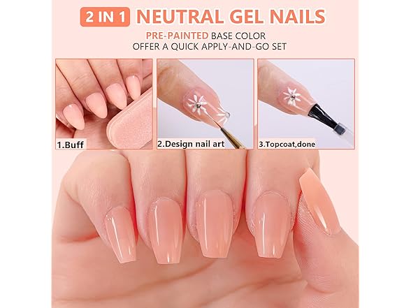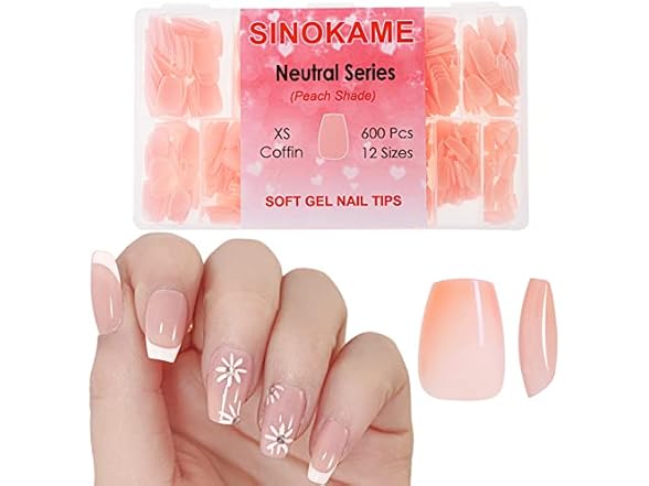 SINOKAME Neutral XS Coffin Soft Gel Tips, Extra Short Gel Press on Nails Nude Base Pre-colored for a Quick and- Easy Application, Sheer gel nail Tips Can Be Cured and Soaked off