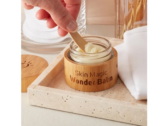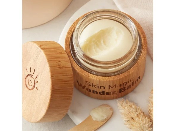 Our Skin Magic Wonder Balm is a multi-purpose skin balm that hydrates, nourishes, and heals the skin. It’s made from a superb formula that includes the amazing vegan certified Japanese wax tree that retains skin moisture like no other. It’s the perfect product to protect your skin during the change of weather as it promotes healing and builds a protective shield against the elements of a scorching summer, snowy winter, and dehydrating air conditioning.